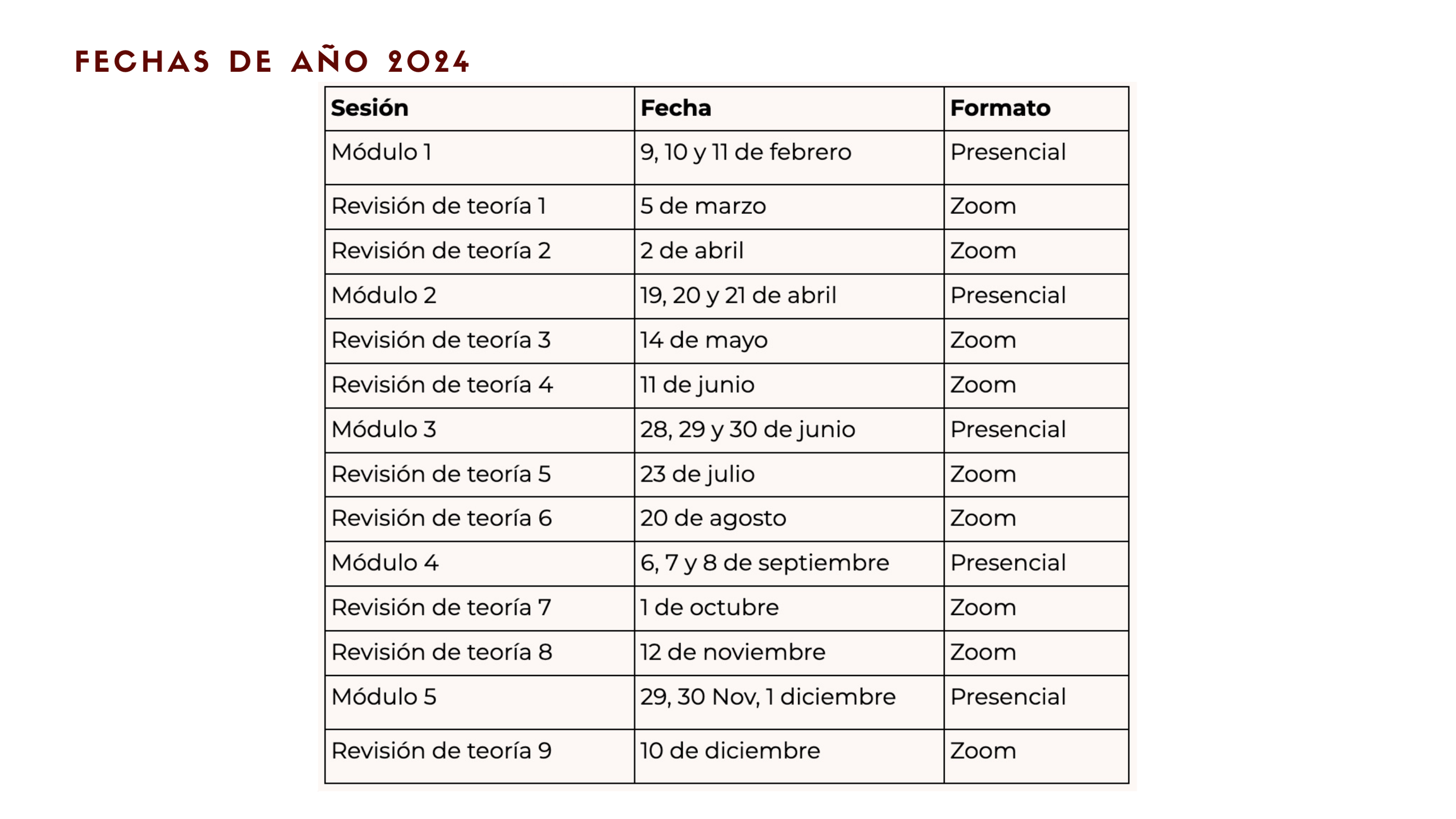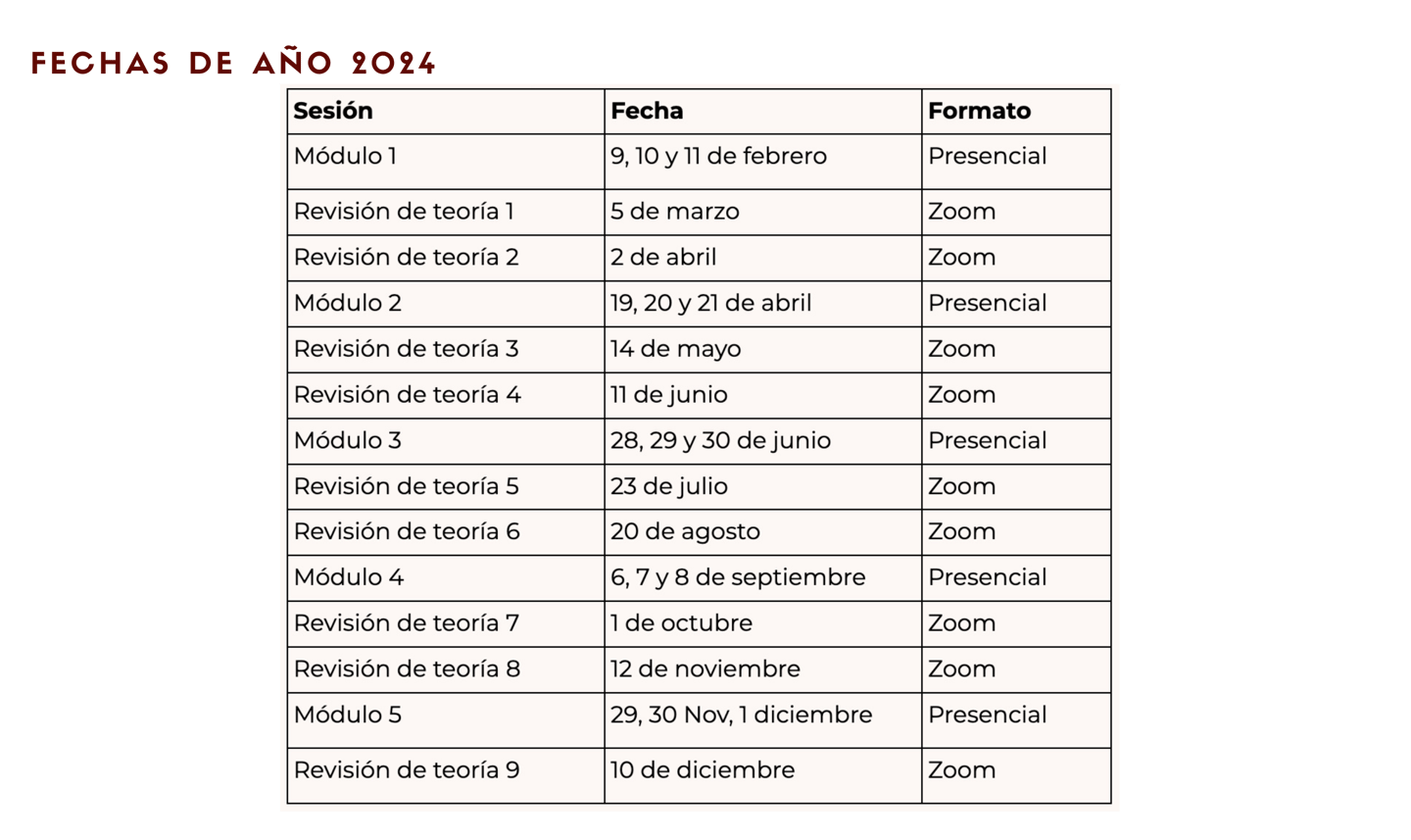 Aquí encontrarás el calendario con las fechas importantes tanto del diplomado como de las sesiones regulares.